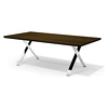 - Базовые элементы металлических каркасов столов и брифинг-приставки — Х-образные опоры, выполненные из полированной до зеркального блеска нержавеющей трубы прямоугольного сечения 80х20 мм и дополненные парой металлических траверсов из трубы 30х30 мм с черным матовым полимерным покрытием.