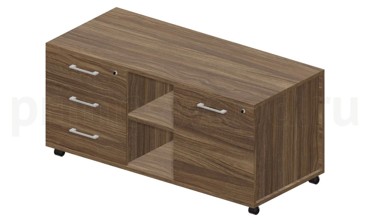 Тумба мобильная сервисная левая (3 секции, усиленные колёсные опоры, ручки - алюминий) 120х53х57см